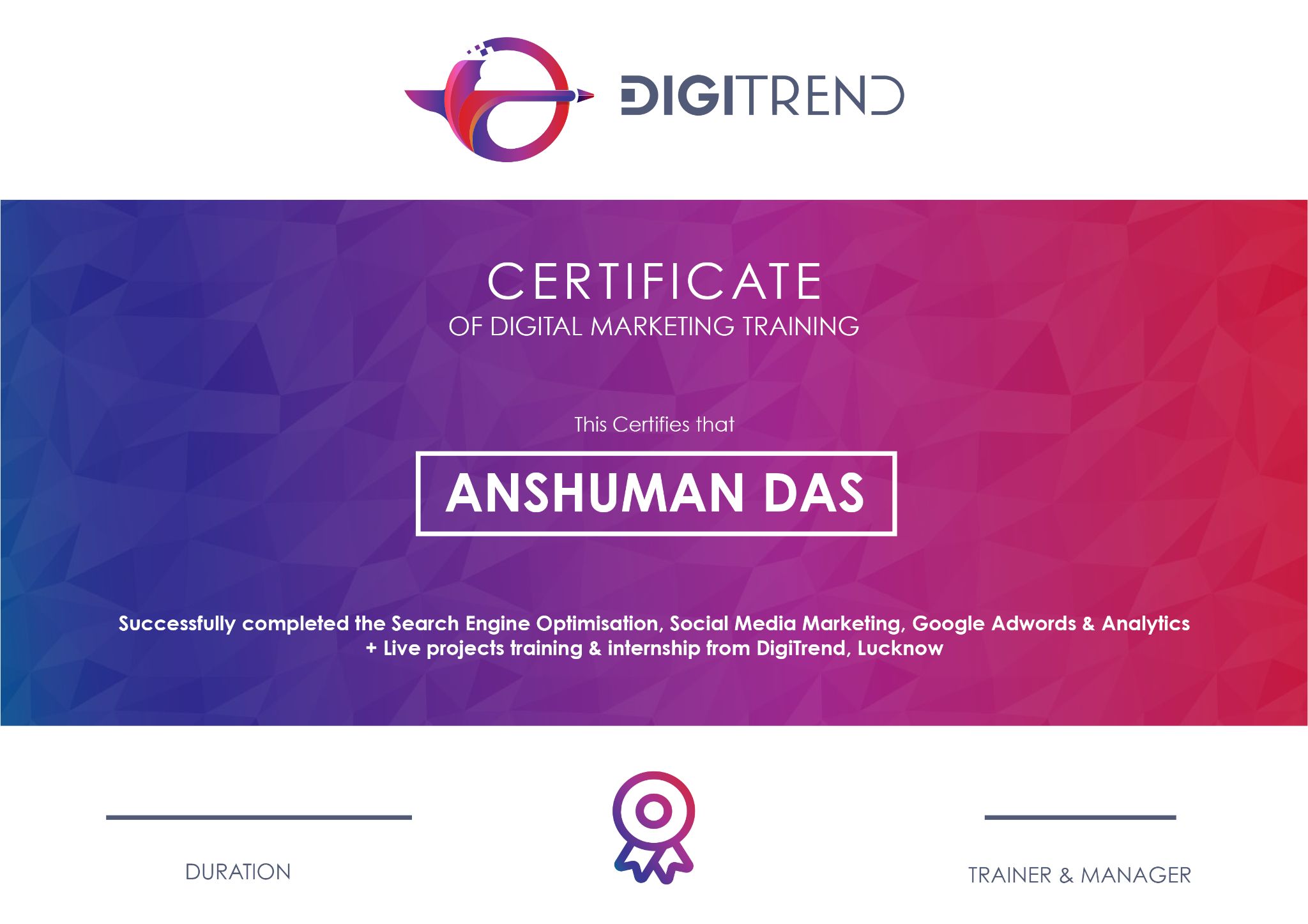 I am extremely satisfied with the digital marketing training I received at Digitrend. The trainer are highly skilled and the practical approach of the training helped me gain confidence in my digital marketing skills, making it the best digital marketing institute in Lucknow.